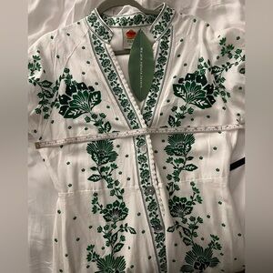FARM Rio White and Green Floral Long Sleeve Dress