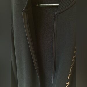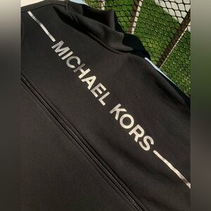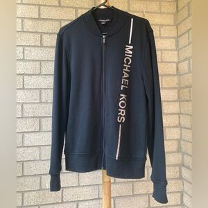 Michael Kors Black Super Soft Fleece Lined Men’s Zip Up Silver Logo Stripe Sweatshirt