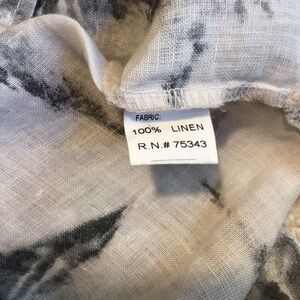 100% linen, the top is a pullover. Italian maker. Lightweight.