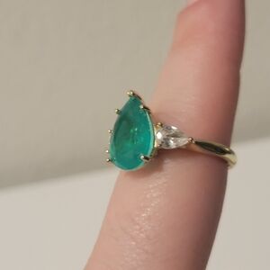 This stunning ring features a vibrant green teardrop stone set in a classic gold band. Perfect for adding a touch of elegance to any outfit.