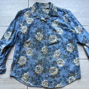 Maeve brand floral ruffle dress in shades of blue and purple.