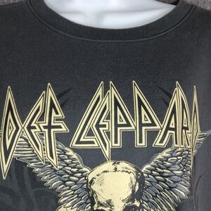 Show your love for the iconic rock band Def Leppard with this comfortable and stylish graphic sweatshirt. Featuring a striking skull and wings design, this sweatshirt is perfect for any fan.