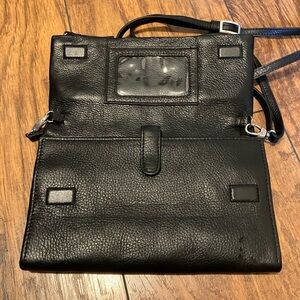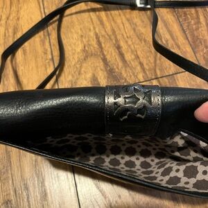 Vintage Brighton Black Leather Crossbody Bag with Silver Accents