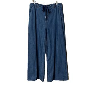 Aritzia Wilfred Womens Size L Navy Elastic Back Waist Tie Wide Leg Pants