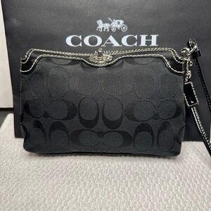 Elegant Coach pouch in blush leather. Features a secure zip closure.use as a bag charm keychain