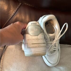 Nike Air Force 1 White and Silver Sneakers