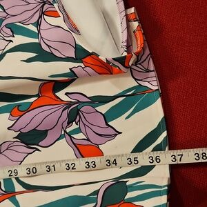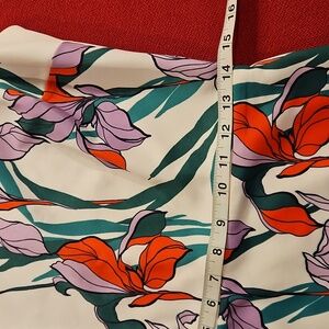 • floral print, are these irises?.. red and purple flowers, hook & eye closure in the back, half lined... swingy, peplum type bottom.. excellent pre-owned condition....Medium...Alexia Admor...