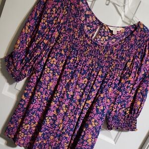 LC Lauren Conrad Floral Top with Green and Pink Accents