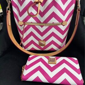 Comes with cross body strap. You can add gold chain for a night out. Has 8 card slots inside so no need for a wallet.