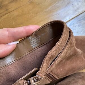 NWT Alex Marie Paxton Tan Suede Leather Square Toe Cylinder Heel Booties Sz 9