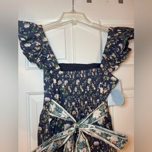 NWT Hill House Pippa in navy blue bonnet. Hidden side zip, has pockets and smocking in back.