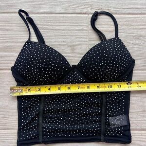 Top Chic Women's Black Rhinestone Embellished Cropped Bustier Top Size Small