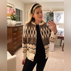 J. Crew Fair Isle Cardigan in Heather Fawn Muslin