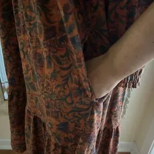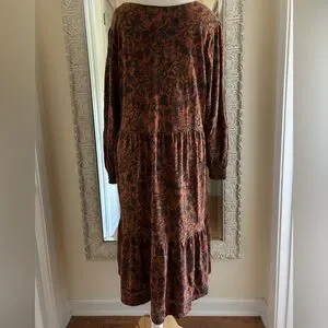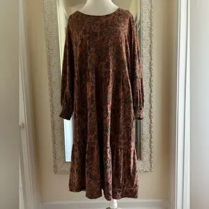 Embrace the season with this chic long sleeve dress, featuring a rich autumnal pattern. Perfect for adding a touch of elegance to your wardrobe.