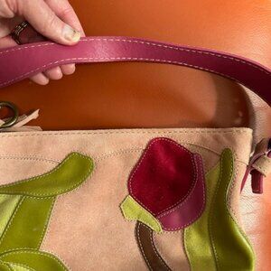 Limited Edition Poppy Flower shoulder bag in light pink/tan with green and pink flowers