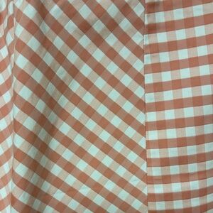 Charming A-line skirt with a pink and white checkered pattern. Perfect for casual outings.