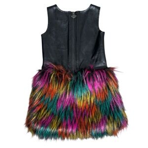 Appaman Black Faux Leather Dress with Multicolor Fur Skirt Size 4T