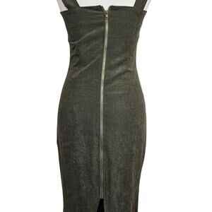 This chic olive green dress from Choosy is perfect for any occasion. Size small, new with tags. Its sleek design and comfortable fit make it a must-have in your wardrobe. Measures 45.5" long, bust is 16", waist is 14.5" and hips are 17"