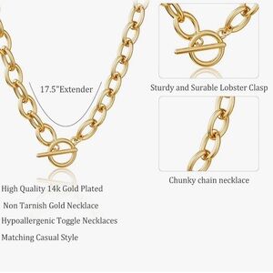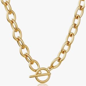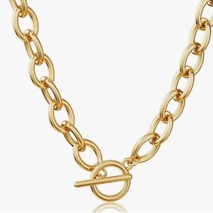 Elegant gold chain necklace with toggle clasp. Perfect for any occasion.