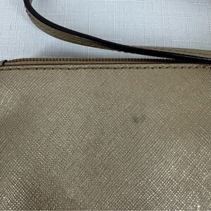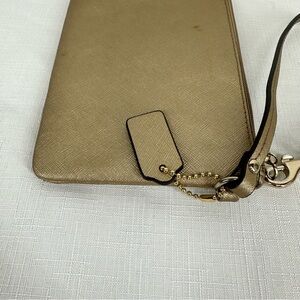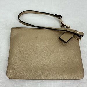 Coach Darcy Gold Leather Bow Wristlet. A couple of tiny light spots besides in good preowned condition.
