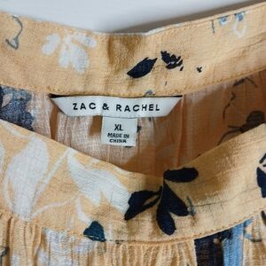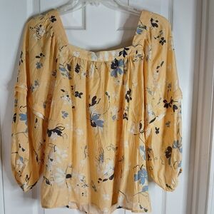 Butter Yellow w/ Blue Floral Square Neck Women's Top Sz XL