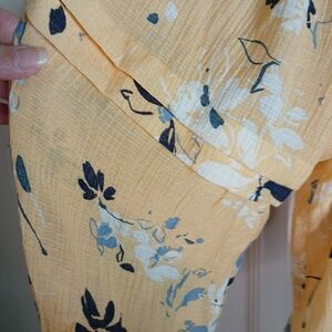 Embrace elegance with this yellow floral women's top. Perfect for any occasion, this top combines style and comfort effortlessly. Gauzy flowy material. Fun sleeve details