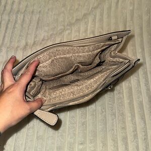 Stylish beige handbag featuring elegant tassel accents. Perfect for any occasion.