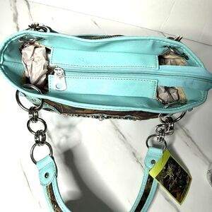 Heritage West Blue Green Camo Rhinestone Cross Western Purse