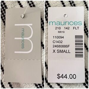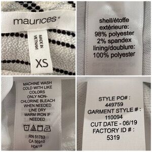 NEW Maurices Striped Flutter Sleeve Dress Shark Bite Hem White Black XS 110094