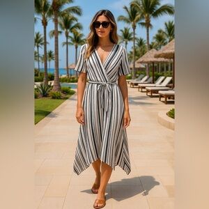 New Striped Flutter Sleeve Dress from Maurices in white and black XS