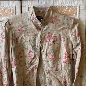Vintag Ralph Lauren Chinese Rose Print Linen Mandarin Jacket EUC