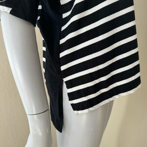 Size XS. Like new condition - no signs of wear. Washed, ironed & ready to wear! 100% Cotton knit fabric. Black/white stripes. Loose fit. Slight hi/low style. Split sides. Made in Portugal. Approximate measurements (taken when laying flat - cannot guarantee fit):