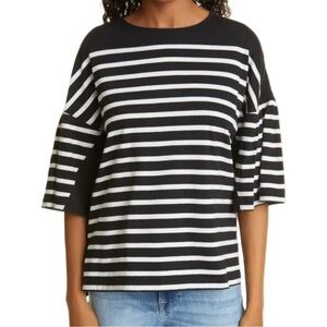 LA LIGNE Striped Cotton Tee Crewneck Elbow-Length Sleeves Black & White Size XS