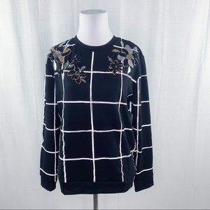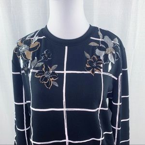 Apt. 9 black windowpane pattern floral detail sweatshirt