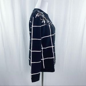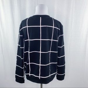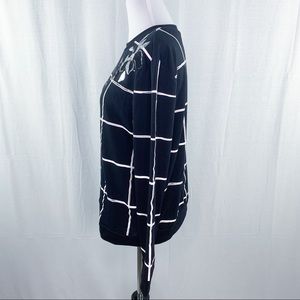 Apt. 9 top from Kohls. Long sleeves, crewneck. Black with a white windowpane pattern. Floral detail on the shoulders. Lightweight sweatshirt perfect for fall. Machine wash cold on gentle cycle. New with tags!