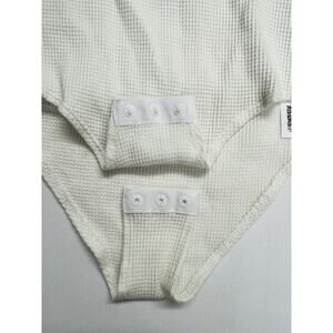 Topshop White Puff Sleeve Waffle Knit Cutout Milkmaid Bodysuit Size XS White