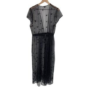 TORRID SHEER FRONT TIE EMBROIDERED MAXI KIMONO COVER UP SIZE 1/2