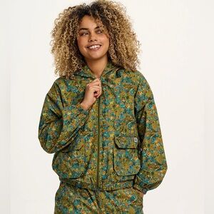 Damson Madder Diana green and pink quilted bow jacket. Charming details define this sweet quilted jacket from Damson Madder, featured in an adorable dotted-floral print with bow appliques and contrast trim for the perfect finishing touch. Semi-cropped, boxy fit. Features: Quilted organic cotton fabrication, button-front closure, contrast piping, ruching at shoulders, bow details. In great condition. This is a UK size 12 which is a US size 8.