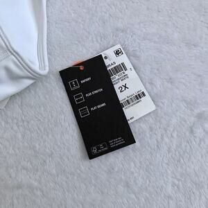 NWT. White Sports Bra for Women Size 2X. Pull on, criss cross back, cut out middle back, reflective brand logo back right side, removable padding, as per tag "rapidry, flex stretch, flat seams, medium impact". Pictures are part of description.