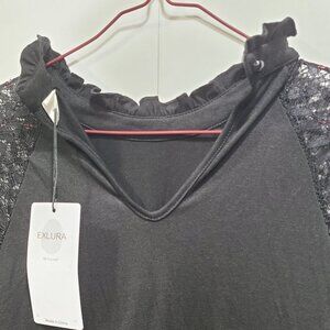 NWT Black elastic waist dress- stretchy waist. Sleeves are see through lace with cuffed sleeves.
