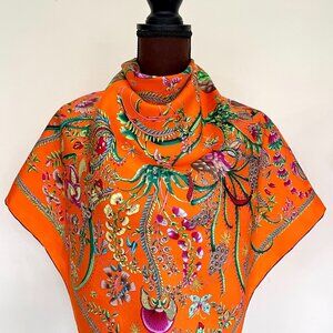 New Gucci Classic Floral Print Silk Scarf with Gucci Box Gift