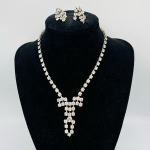 Vintage new old stock gold tone faux pearl choker & clip on earrings set