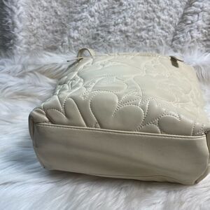 Betsey Johnson Cream Shopper Heart Quilted medium shoulder bag gold tone accent . Front pocket.top zipper the inside lining has a side zipper two side pockets
