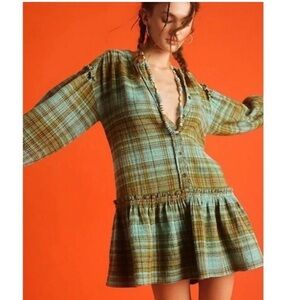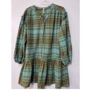 Free people Alexa Plaid Mini Dress XL Green and Brown bohemian boho NEW