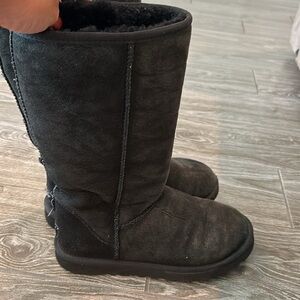 EUC Ugg black classic tall boot with genuine leather, genuine sheepskin lining, and rubber sole. No damage or odor. Minor signs of wear! Please se pictures! Smoke free home!