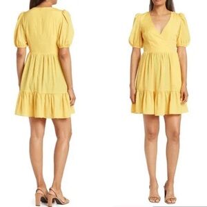 Eliza J Yellow Puff Sleeve Ruffle Flare Tiered Mini Dress