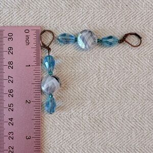 Handmade Antique Copper Teal Blue Green Glass Long Boho Earrings Leverback