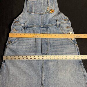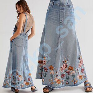 Sold by Free People: Free People x Driftwood Sammy Garden Skirtall in size Large. A timeless silhouette from Driftwood, re-imagined with a femme touch of texture. Relaxed heavy denim, A-line fit with classic bib-and-brace silhouette, functional bib pockets, side button closures, adjustable brace straps, floral embroidery throughout, raw-edge hem. Effortlessly layered with your favorite tee or a cute bralette, this skirtall has endless ways to wear. Excellent condition. Please see pictures for all for details, fabric content, condition & measurements, since they are part of the description. My prices reflect the rarity of my items and what I paid for them. Reasonable offers welcome.