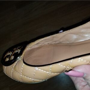 Tory BurchReva Peach Quilted Patent Leather FlatDESCRIPTION:Size 5 M