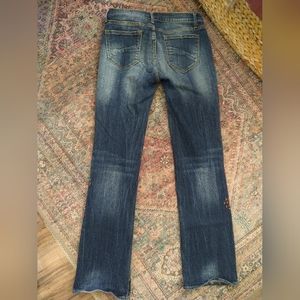 Stylish blue jeans with colorful floral embroidery. Perfect for adding a touch of flair to your wardrobe.